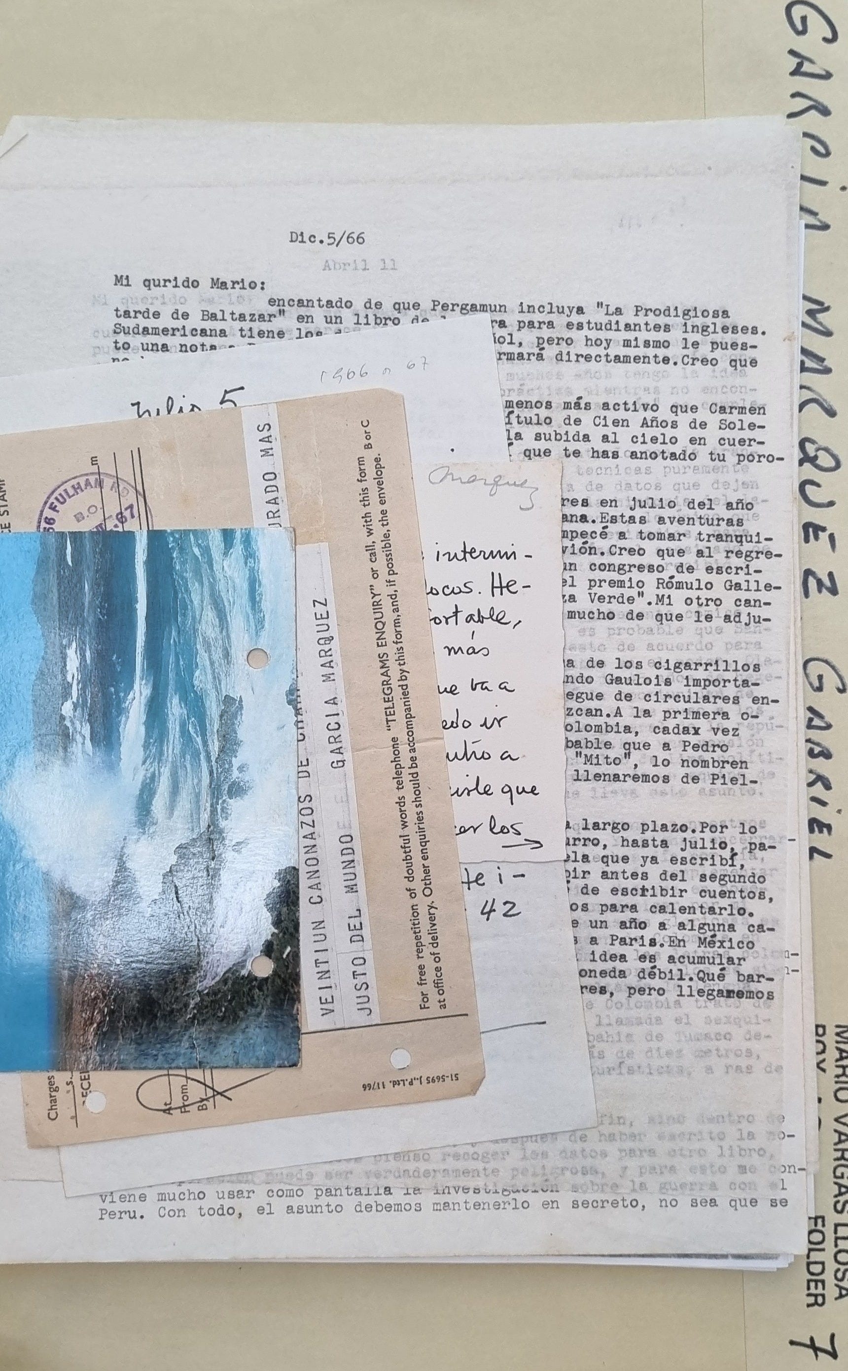 Las notas manuscritas, hojas mecanografiadas y cartas postales están fechadas en un periodo de alrededor de 20 años, que se corresponde a las décadas del llamado boom latinoamericano. Entre finales de los años 50' y principios de los 70', escritores como ellos escribieron obras (Cien años de soledad, Rayuela, Conversación en la Catedral, La muerte de Artemio Cruz) que se convirtieron en las bases de la nueva literatura latinoamericana, transformándola para siempre.
