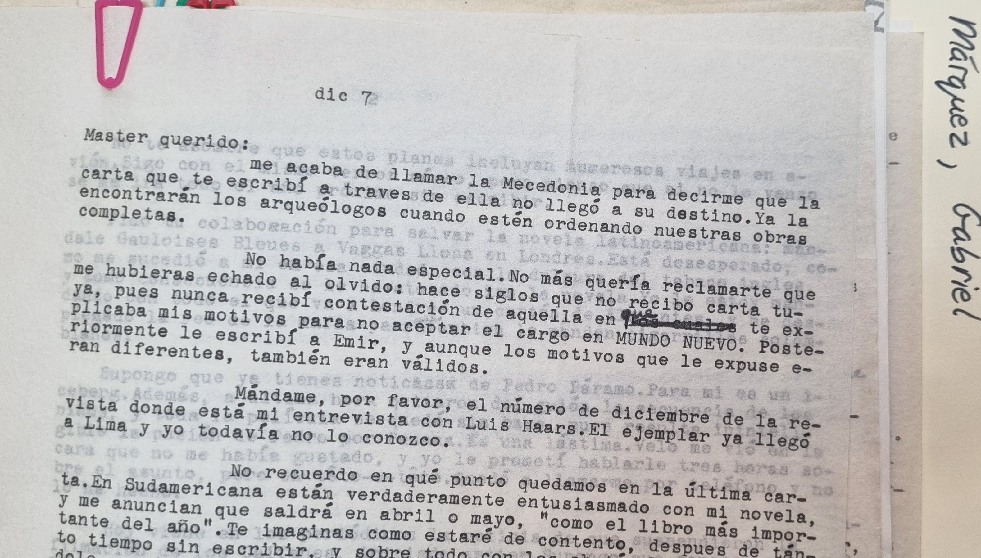Allí había correspondencia de Fidel Castro, Bill Clinton, Toni Morrison y otras figuras destacadas de la política y literatura del siglo pasado. Entre ellas, apareció también una carta de Carlos Fuentes, que terminó siendo la última que aparece en el libro.